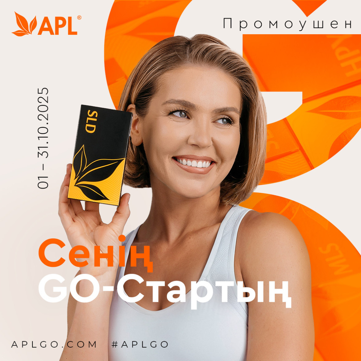 *Сайтта backoffice.aplgo.com 01.10.2025 мен 31.10.2025 аралығында тіркеліп, аккаунтты іске қосқаныңыз және 100 ш.б. және одан жоғары бір реттік тапсырыспен, Апгрейд GO-мәртебесіне бағытталған жағдайда, 25 ш.б. төлемі күшін жояды.